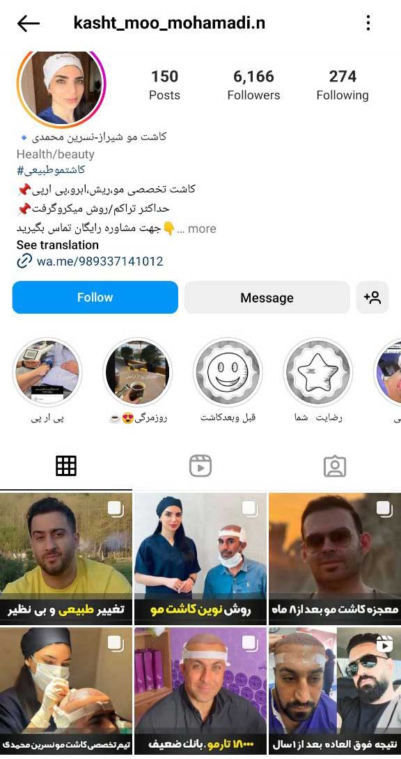 پیج اینستاگرام کاشت مو محمدی